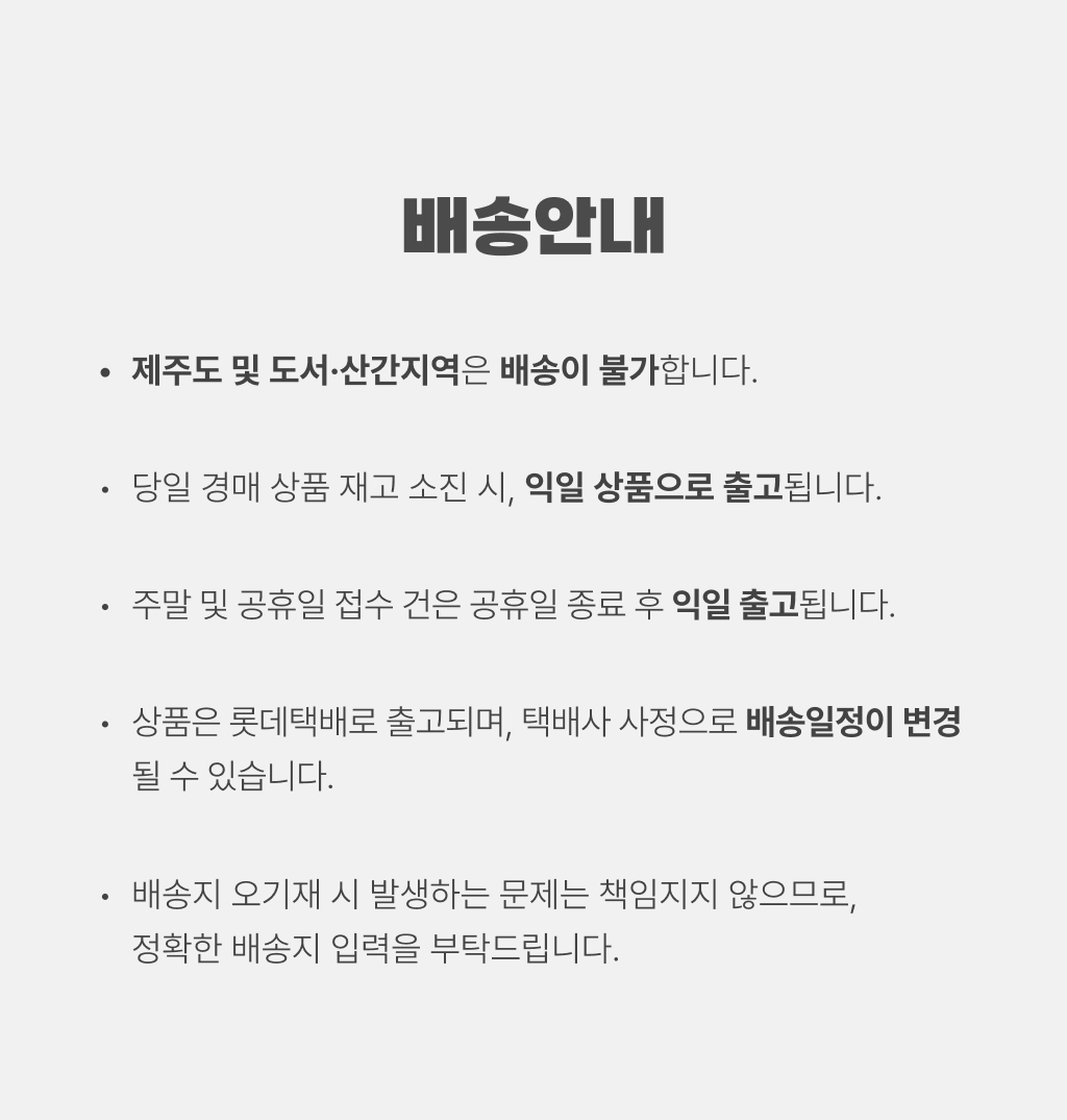 · 일부 상품에 대해서 교환/반품 정책이 위와 상이할 수 있습니다.